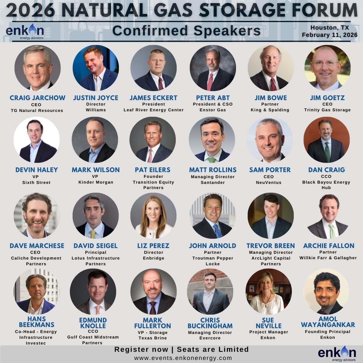 Register Now for Enkon’s 2026 Natural Gas Storage Forum February 11, 2026 – Houston
